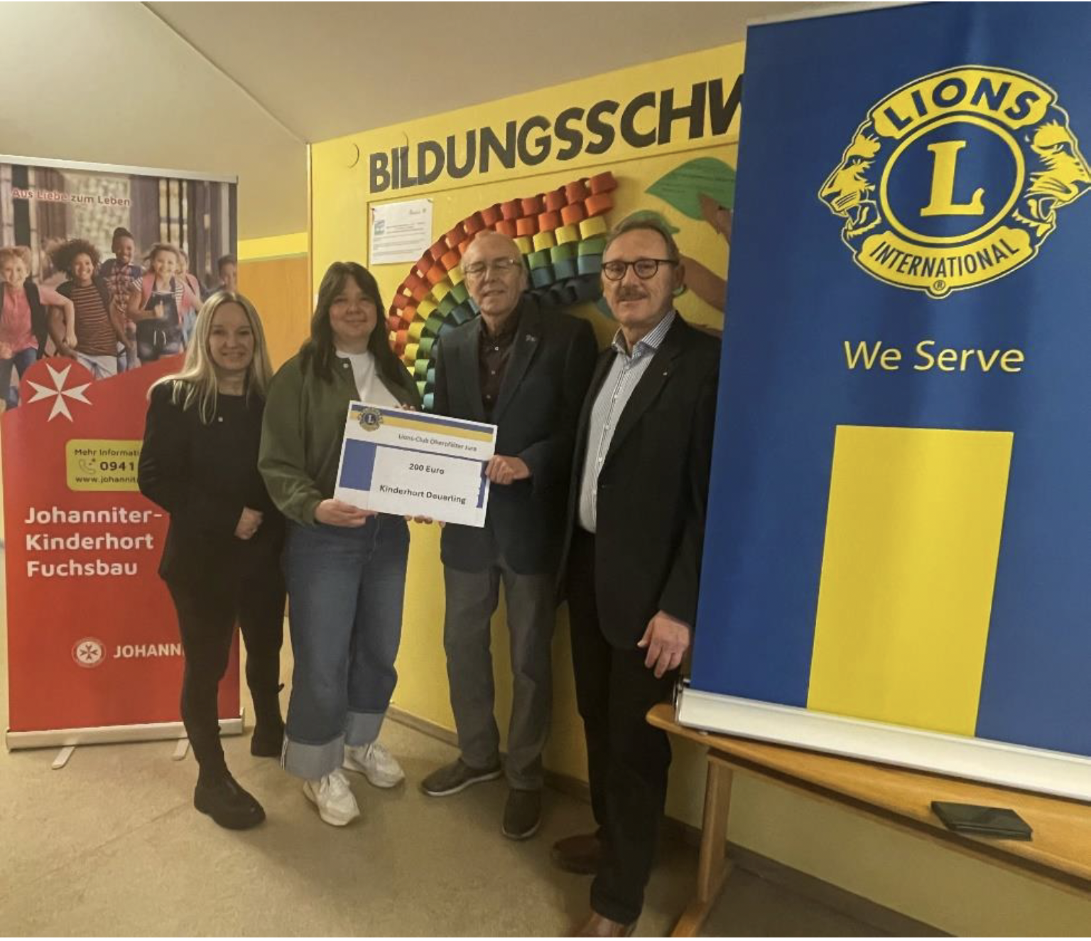 Der von Lion Fritz Bergmann organisierte Verkaufsstand des Lions Clubs Oberpfälzer Jura bei diesjährigen Brückenfest in Deuerling hat einen Gewinn erwirtschaftet der jetzt dem Kinderhort "Fuchsbau" der Johanniter in Deuerling zur Ergänzung seiner Ausstattung zur Verfügung gestellt wurde.