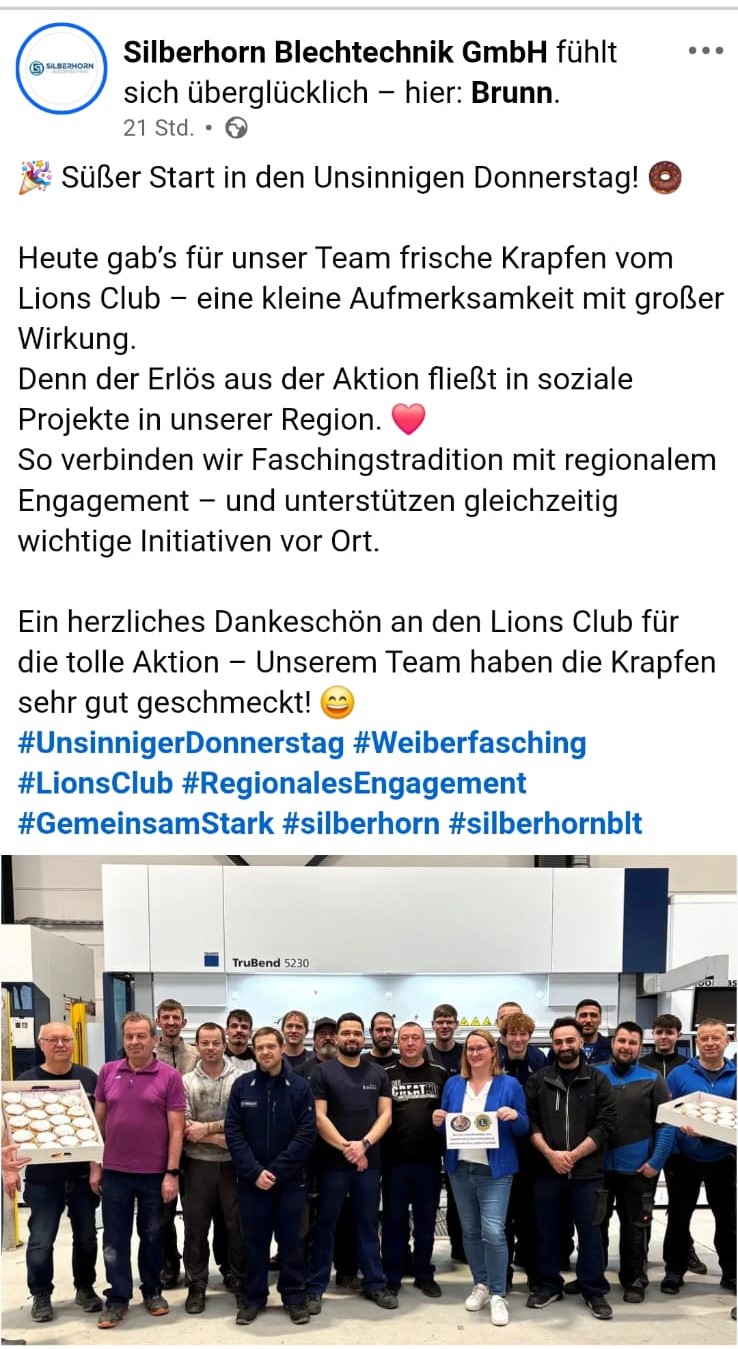 Social Media Post der Firma Silberhorn zur Krapfenaktion |